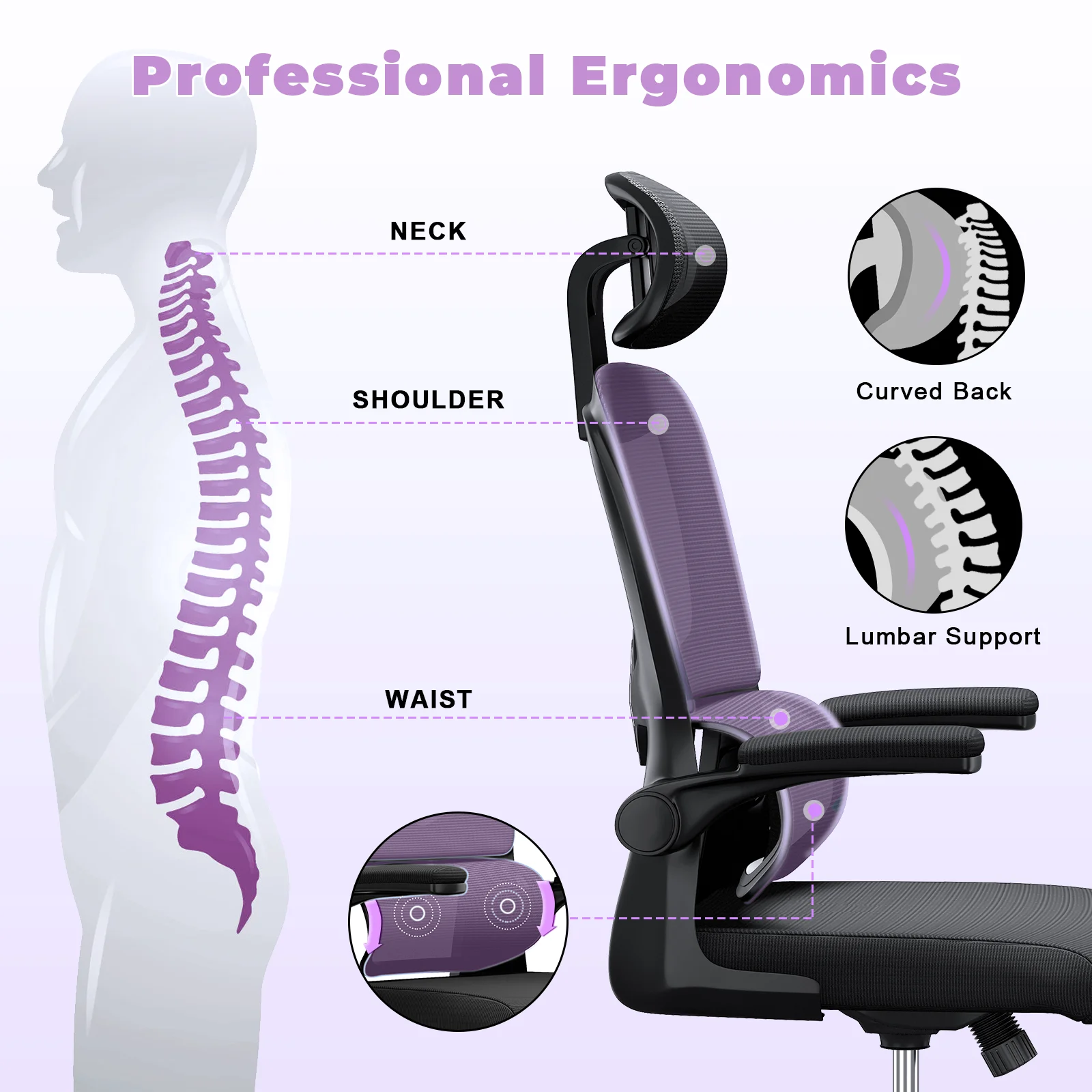 Adaptive lumbar support-Soft cushion-Breathable mesh backrest